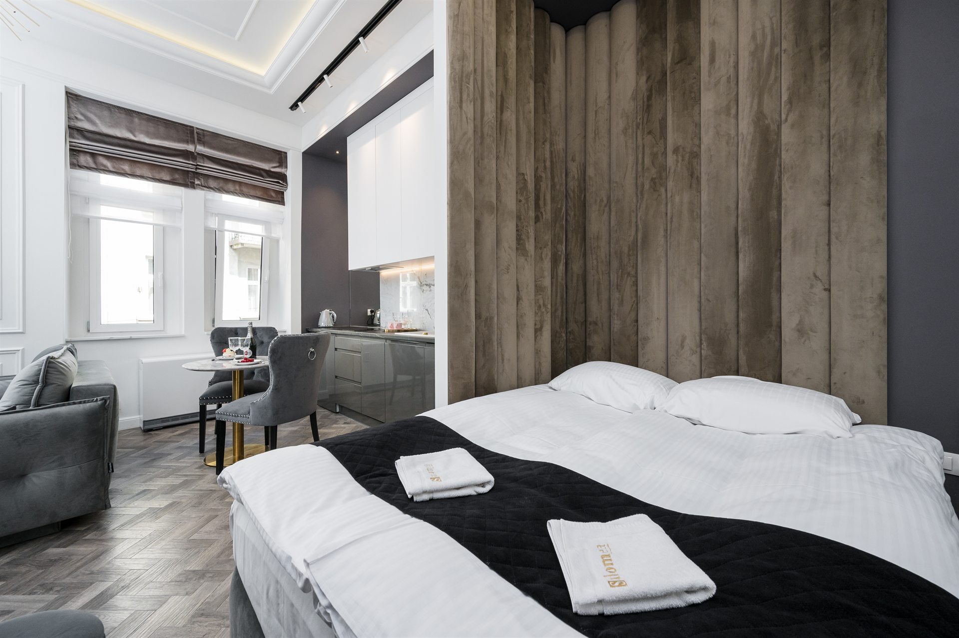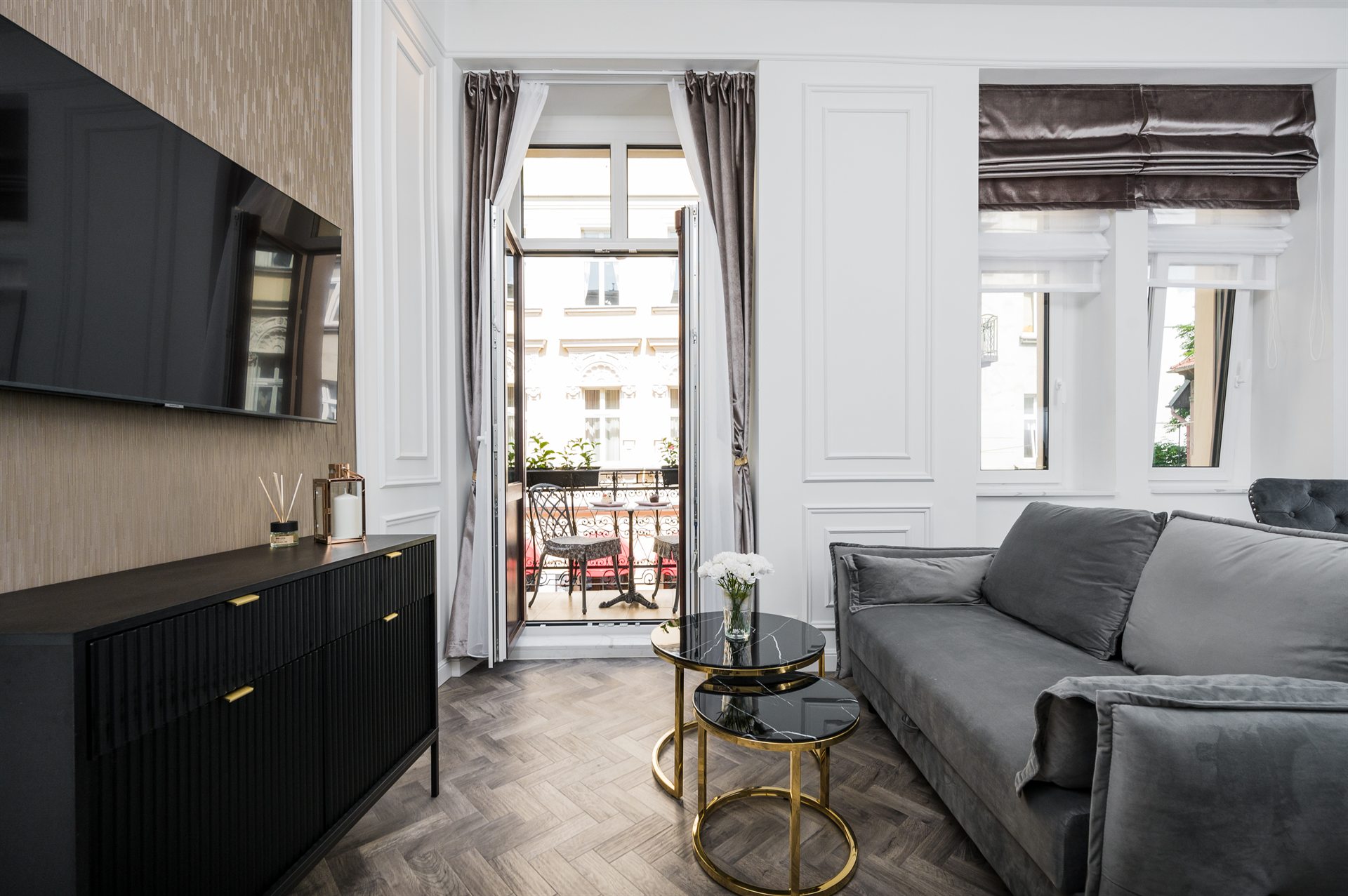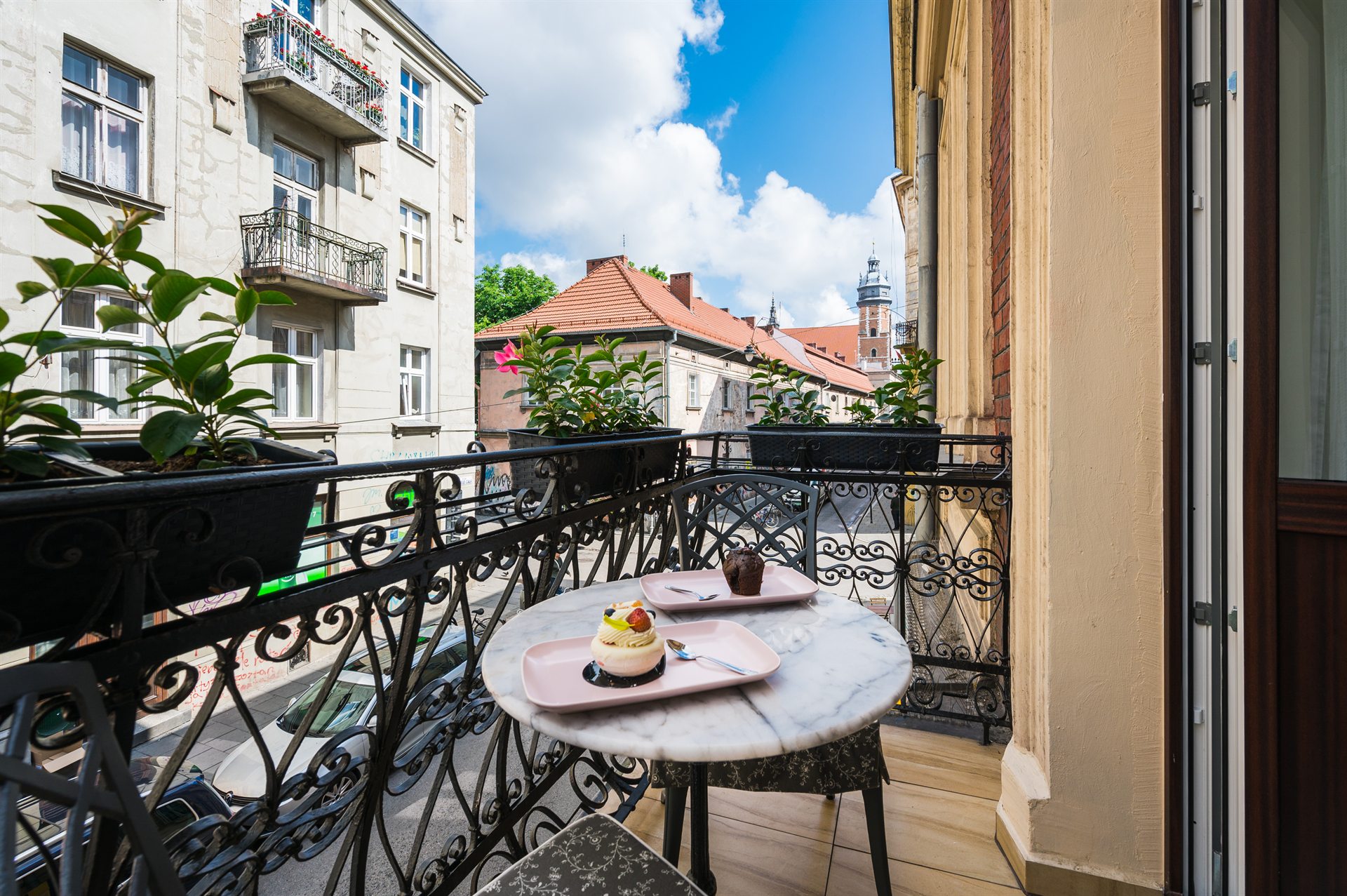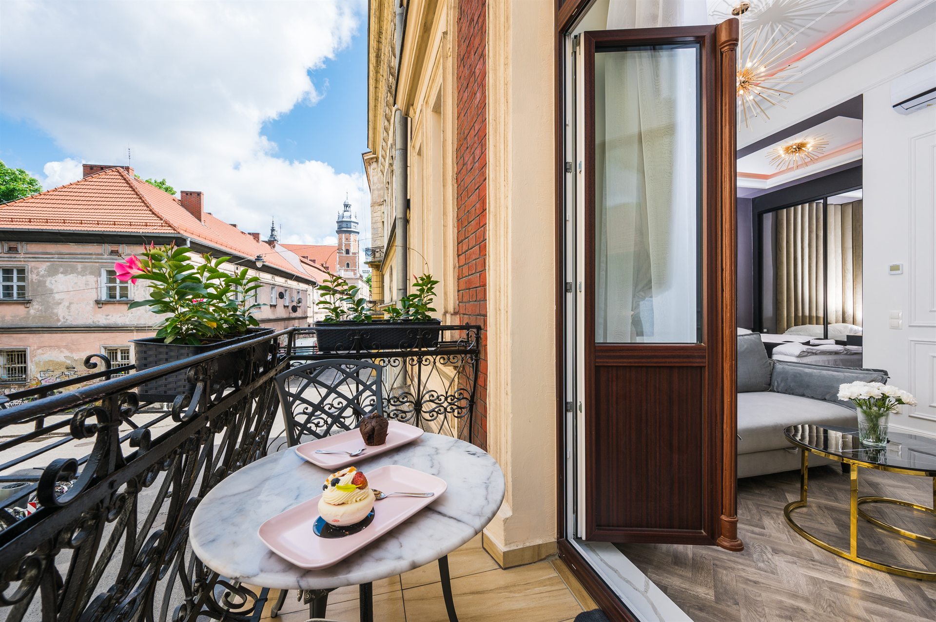 Piękny, cudowny, jedyny w swoim rodzaju apartament z balkonem i uroczym widokiem na ulice Bożego Ciała. W pełni klimatyzowany zawiera 1 salon, 1 oddzielną sypialnię oraz 1 łazienkę z prysznicem i suszarką do włosów. W części kuchennej znajduje się płyta indukcyjna, lodówka, mikrofalówka, zmywarka do naczyń i przybory kuchenne. Apartament jako nieliczny dysponuje balkonem z widokiem na miasto, a także pralką i telewizorem z płaskim ekranem. W apartamencie znajdują się 1 duże małżeńskie łóżko oraz rozkładana sofa.