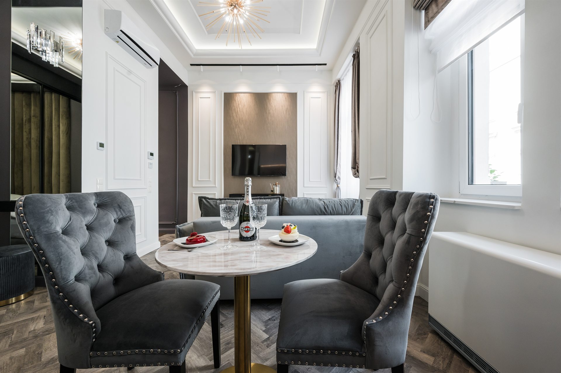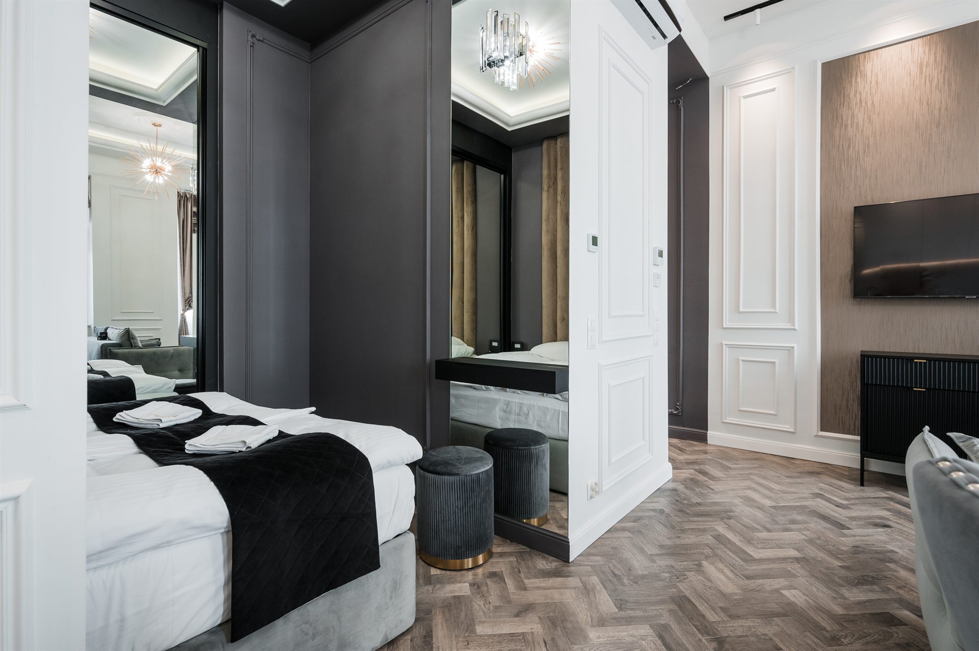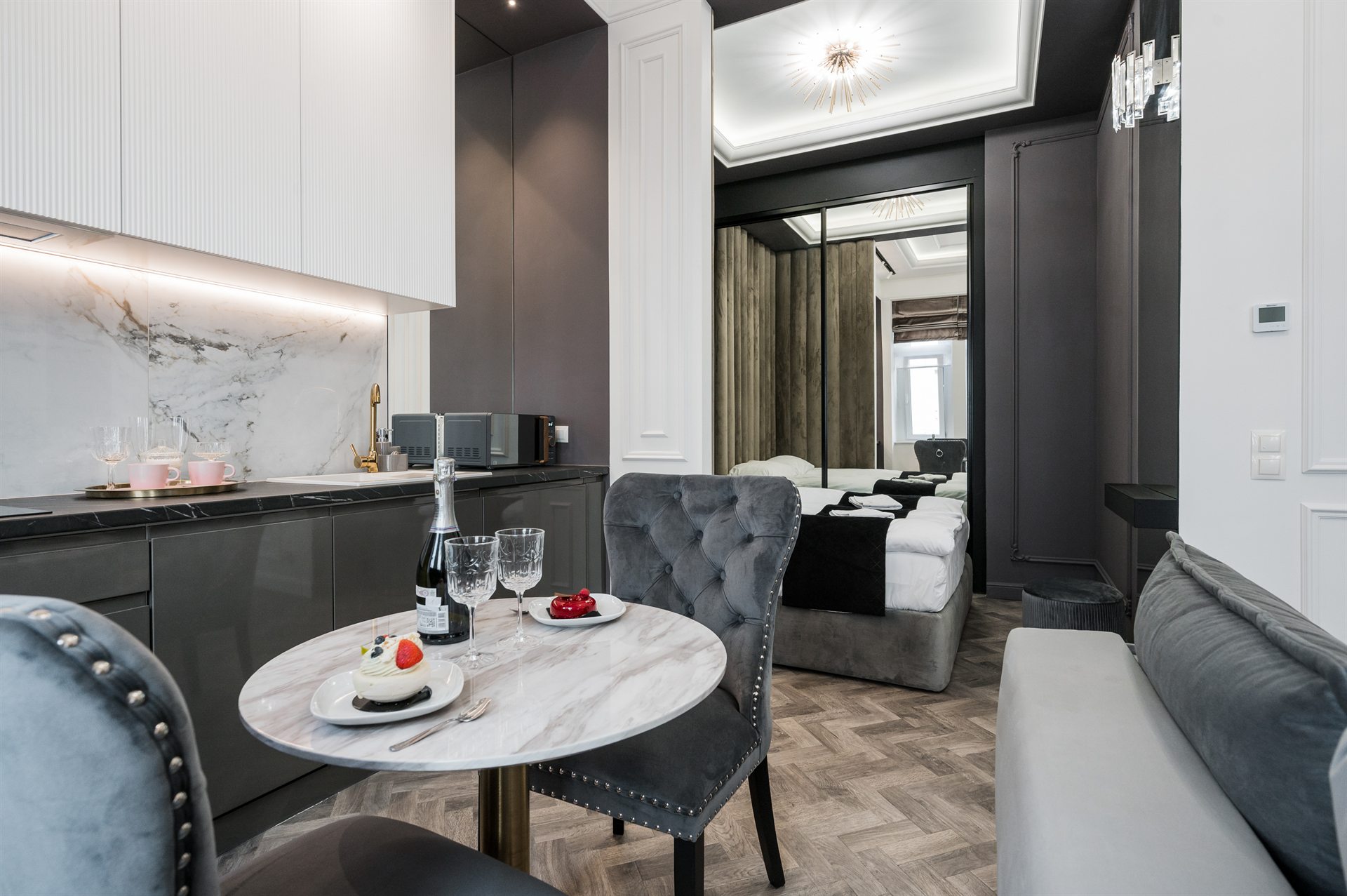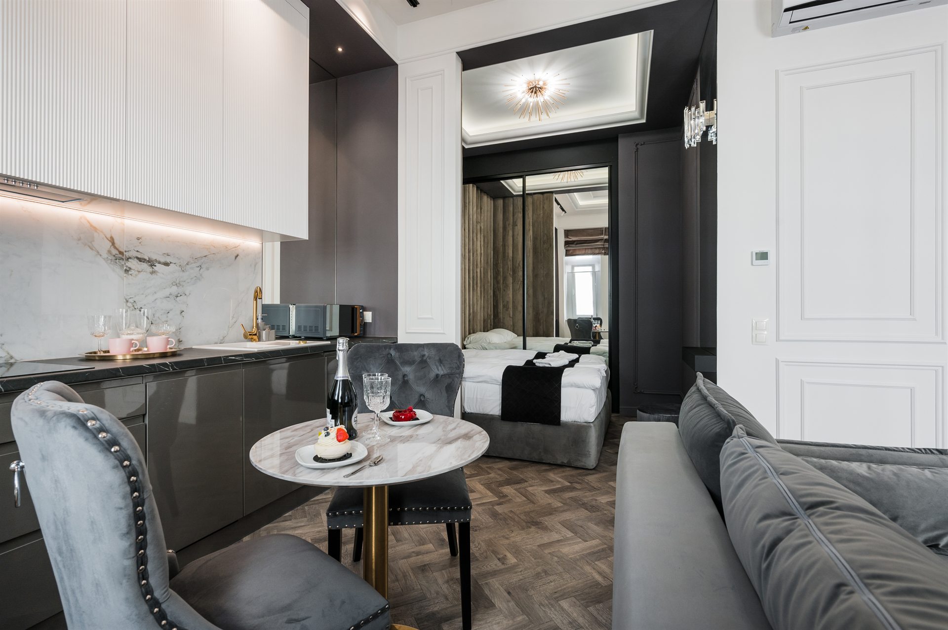Piękny, cudowny, jedyny w swoim rodzaju apartament z balkonem i uroczym widokiem na ulice Bożego Ciała. W pełni klimatyzowany zawiera 1 salon, 1 oddzielną sypialnię oraz 1 łazienkę z prysznicem i suszarką do włosów. W części kuchennej znajduje się płyta indukcyjna, lodówka, mikrofalówka, zmywarka do naczyń i przybory kuchenne. Apartament jako nieliczny dysponuje balkonem z widokiem na miasto, a także pralką i telewizorem z płaskim ekranem. W apartamencie znajdują się 1 duże małżeńskie łóżko oraz rozkładana sofa.