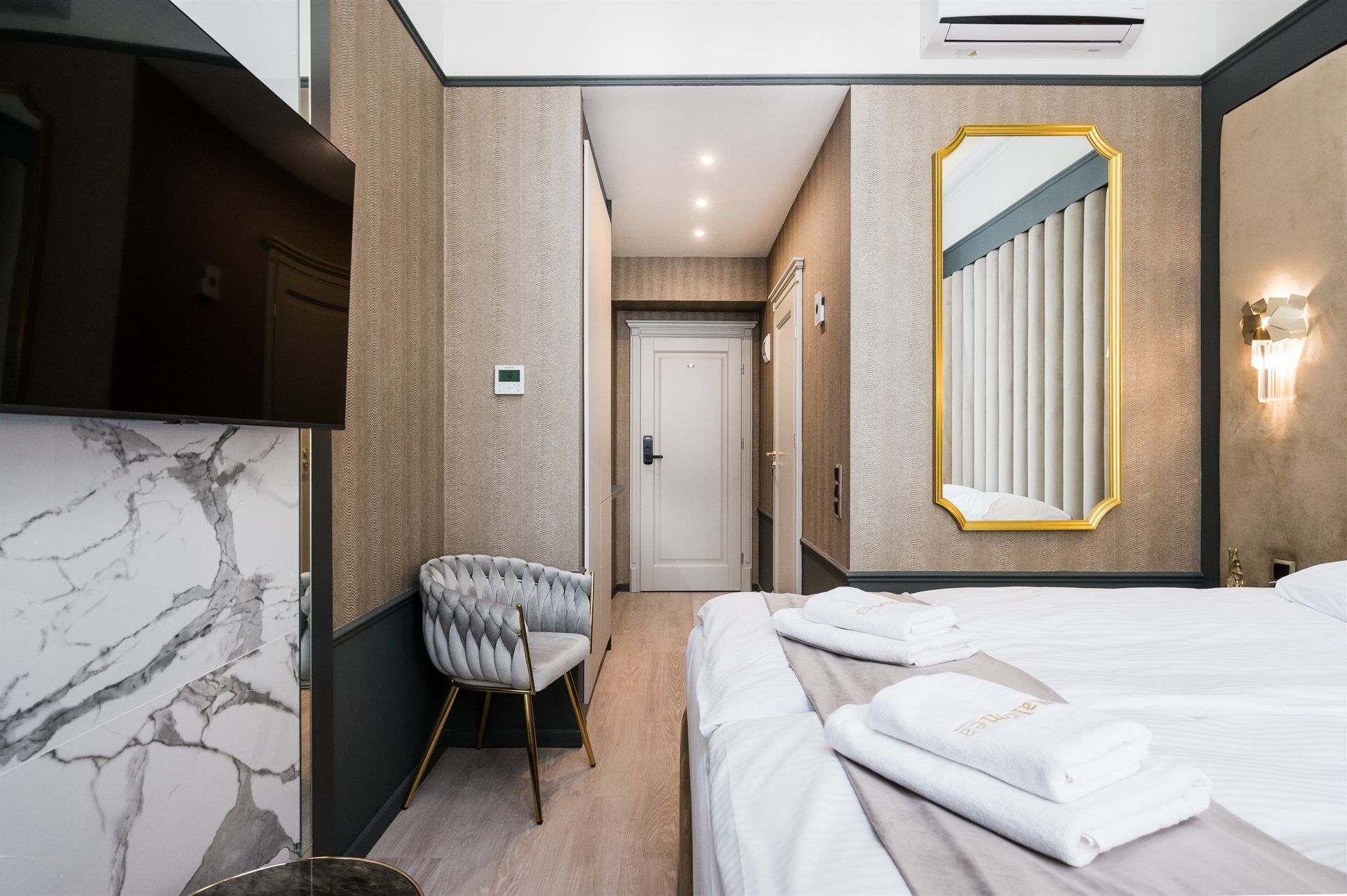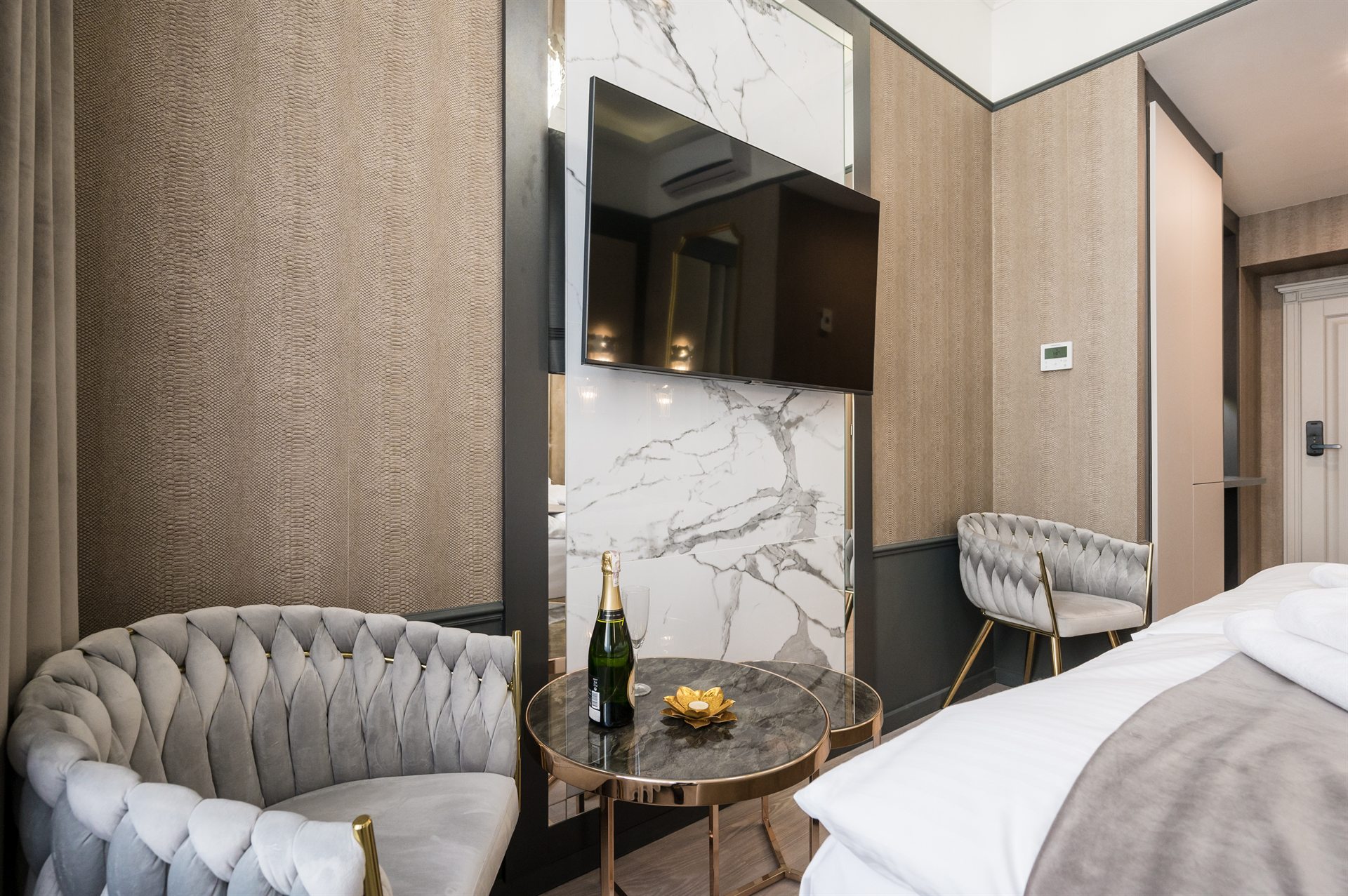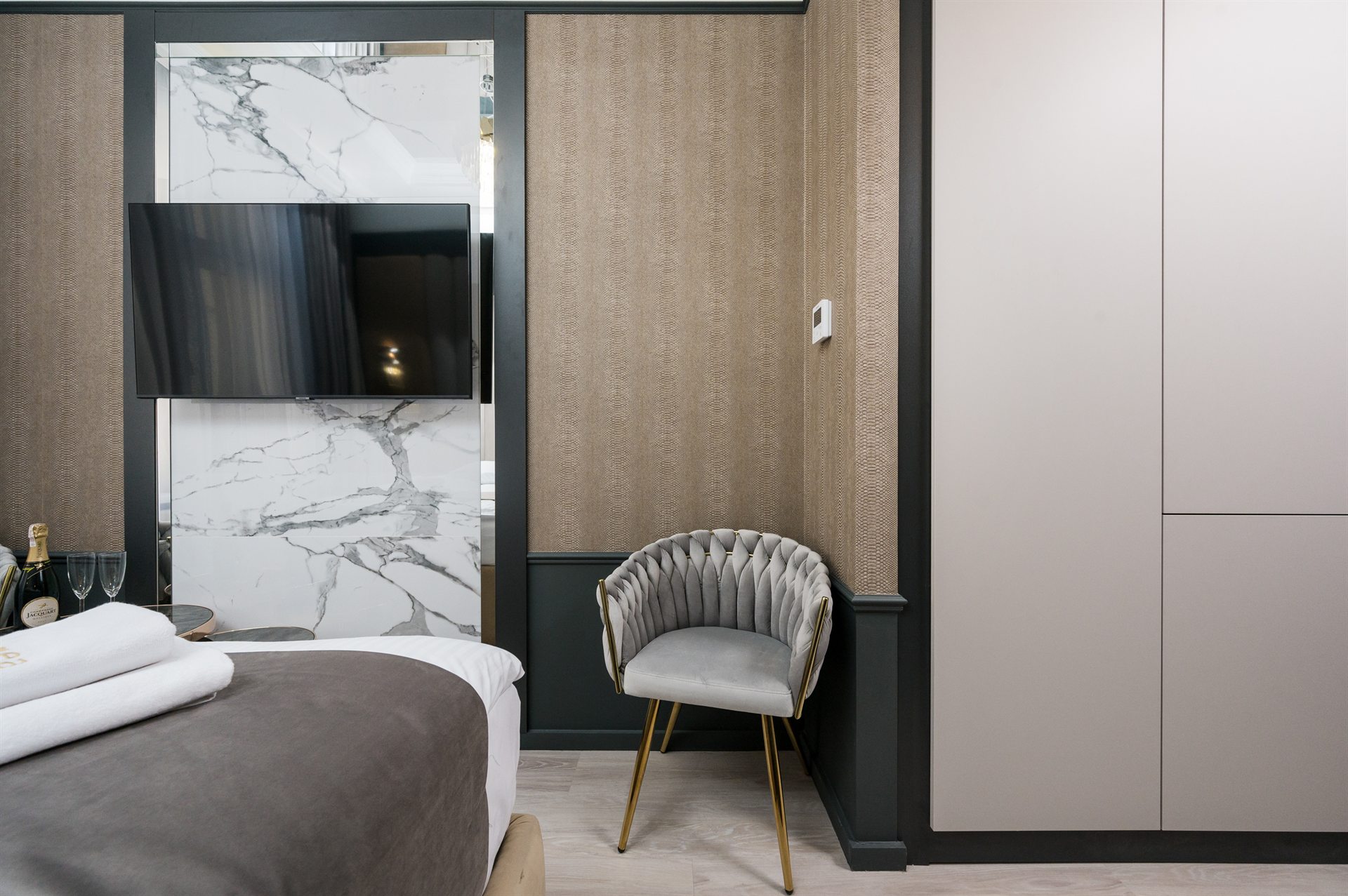 Bardzo klimatyczny i uroczy apartament z oddzielnym wejściem, 1 sypialnią oraz 1 łazienką z prysznicem i suszarką do włosów. Apartament wyposażony jest w aneks z mikrofalówką oraz zestawem do parzenia kawy i herbaty, posiada szafę, ogrzewanie, klimatyzację oraz telewizor z płaskim ekranem. W apartamencie znajduje się 1 duże łóżko a w części sufitowej jest ogromne lustro oraz oświetlenie ledowe o zmiennej kolorystyce.